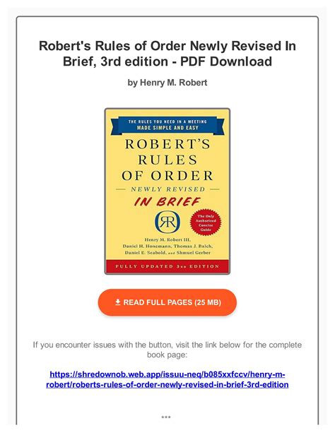 Robert s rules of order Revised Kindle Editon By Click Button. Robert s rules of order Revised it’s easy to recommend a new book category such as Novel, journal, comic, magazin, ect. You see it and you just know that the designer is also an author and understands the challenges involved with having a good book. You can easy klick for detailing book and you can read it online, even you can download it